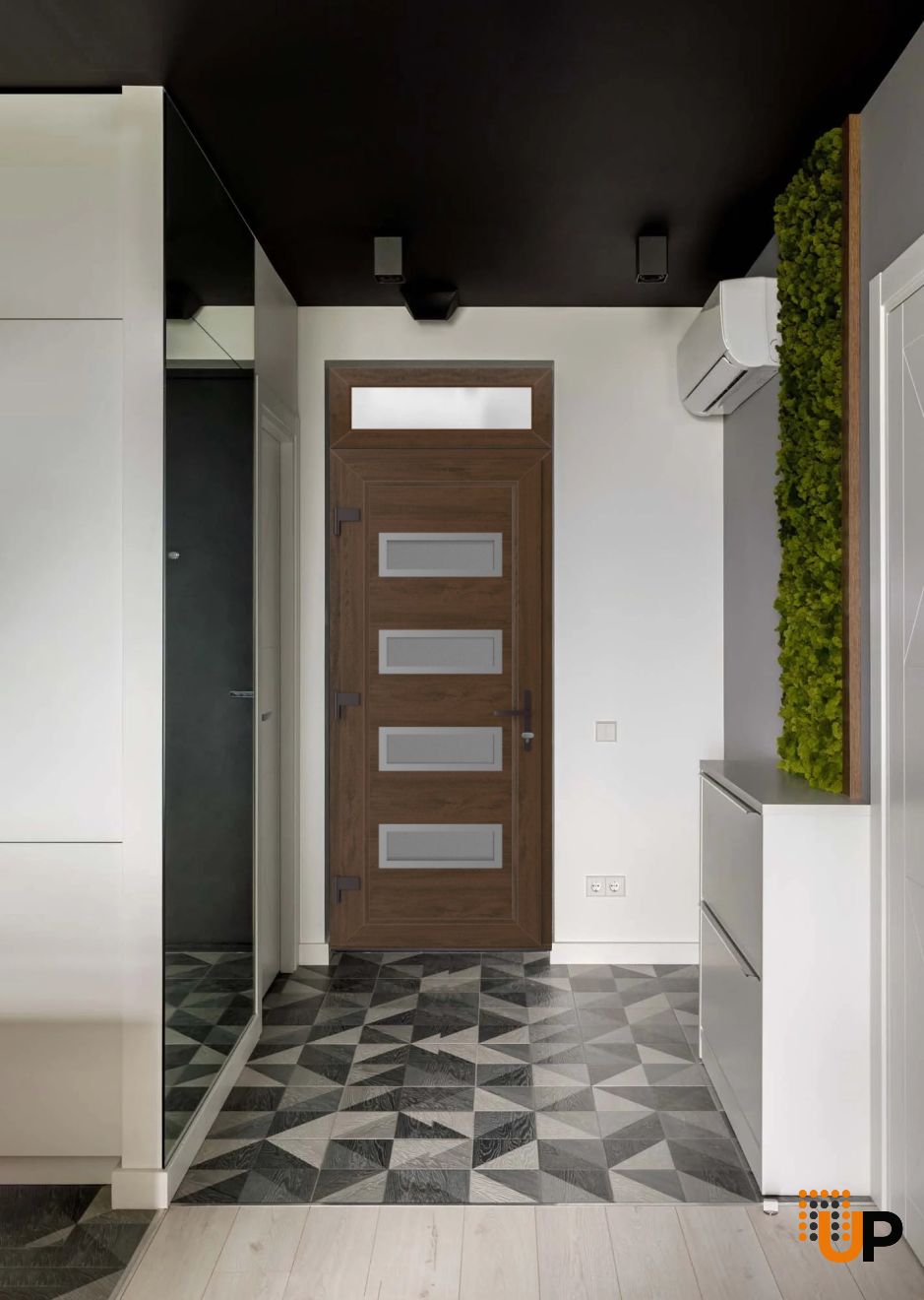 The interior design also features five Clear glass panels, creating a cohesive and stylish look throughout the home.