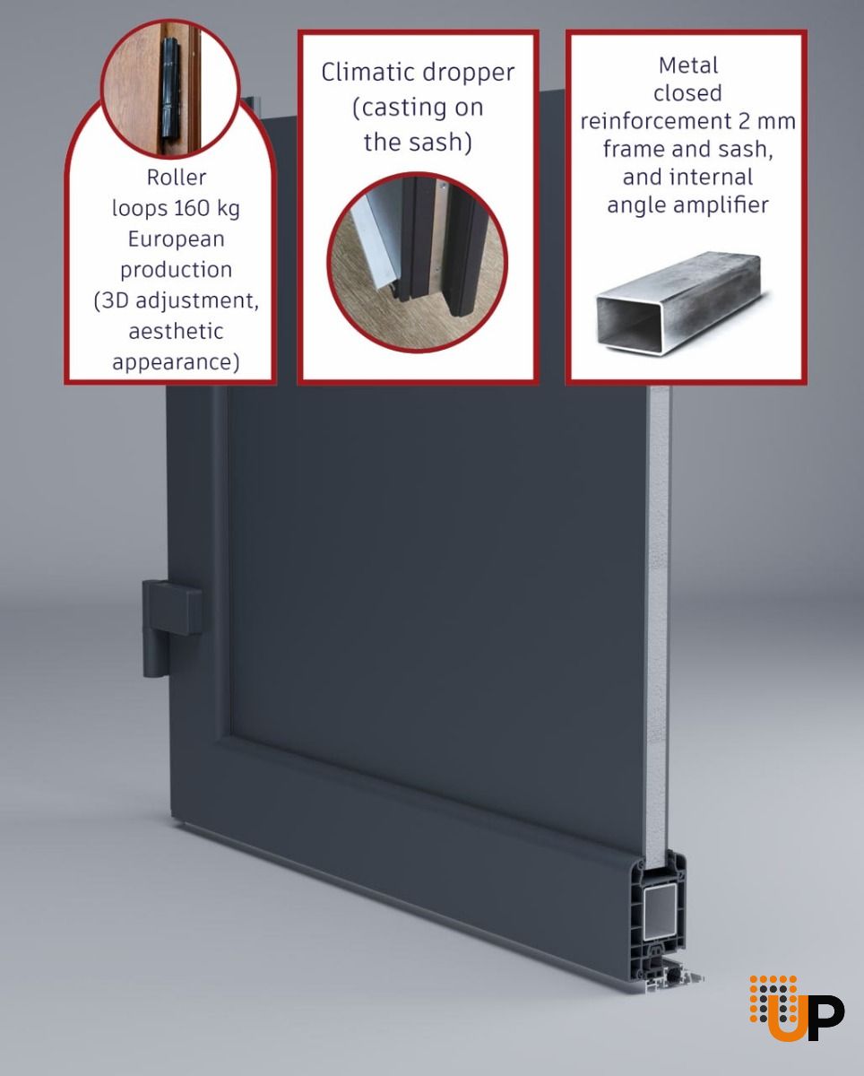 – We use an aluminum threshold with a special thermal insert that cuts off the cold from the room. We also complete with an amplifier to securely fix the bottom of the door and cut off the cold.